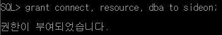 SQL> grant 권한1, 권한2 to 사용자명;